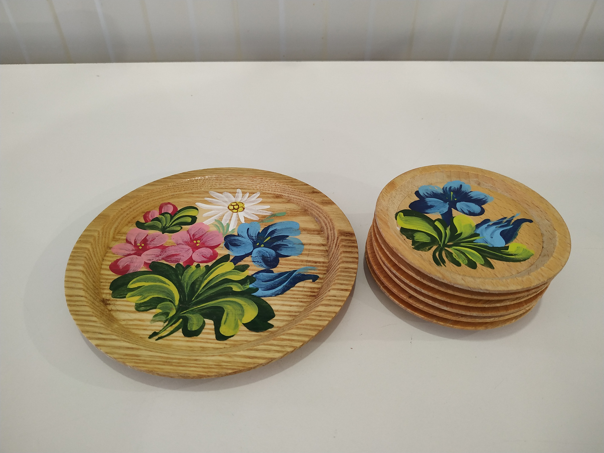 Sottobottiglia e 6 sottobicchieri in legno