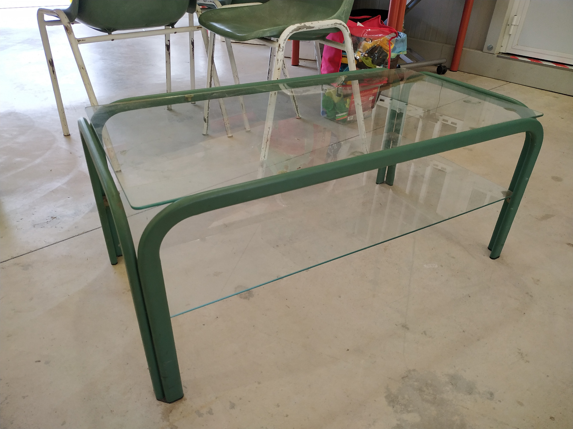 Tavolino in metallo con due piani in vetro (L*P*H 89*46*40 cm)
